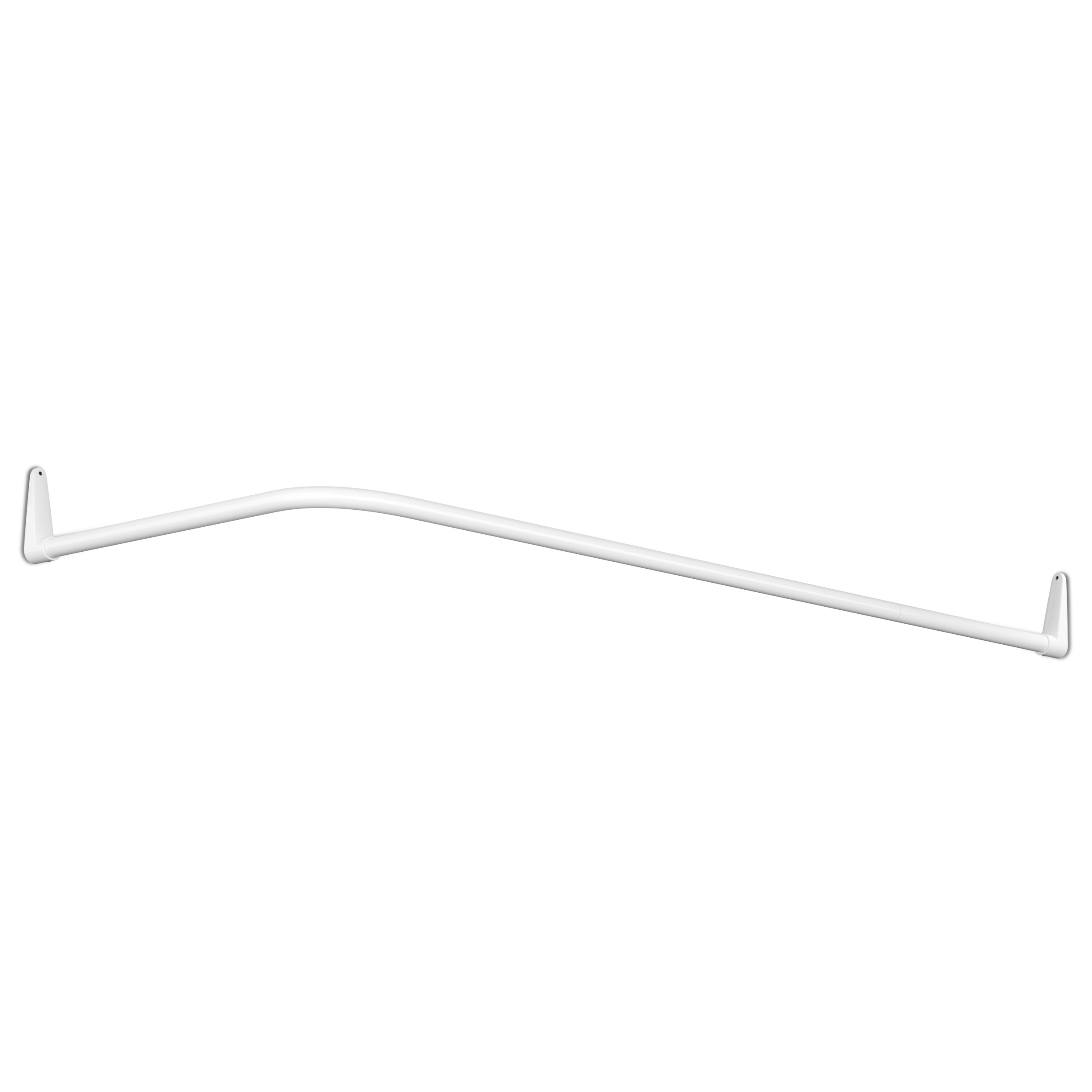 Vinklad duschstång för montering i hörn. Perfekt för att montera runt ett badkar. Komplett med väggfästen, tolv draperiringar samt stänger som monteras till antingen 70×160 eller 90×140 cm. Kompatibel med Ericsindustriers limbara fästen.